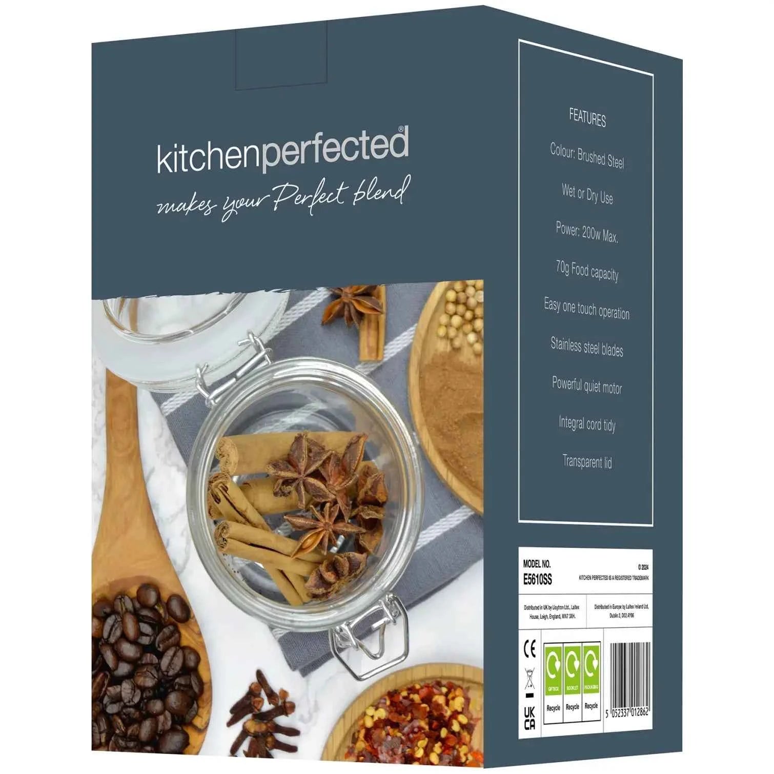 The durable stainless-steel grinding chamber is built for long-lasting performance and easy cleaning, while the compact footprint fits neatly onto any countertop. With its fuss-free operation, reliable motor, and premium finish, the KitchenPerfected Coffee Grinder is the perfect companion for anyone who values fresh coffee and simple, powerful kitchen tools.