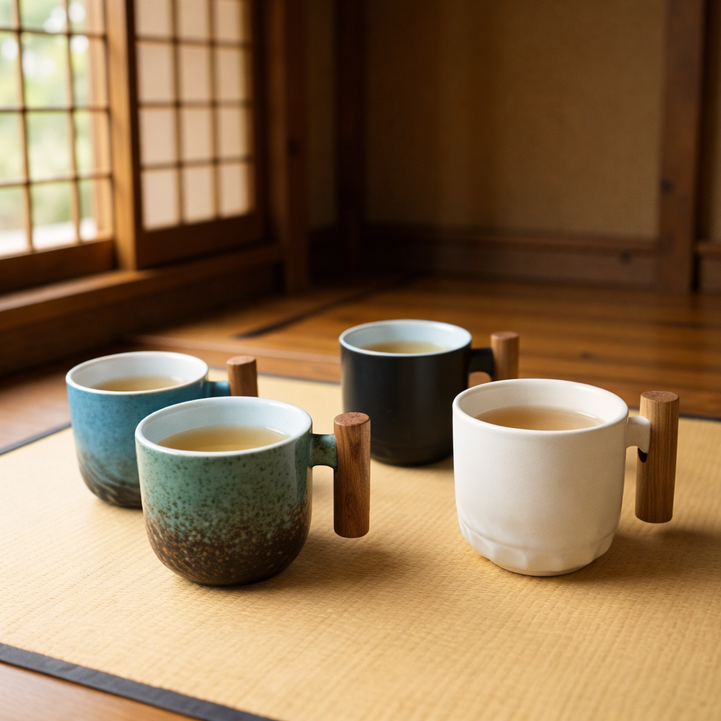 Oak Handle Stoneware Mug