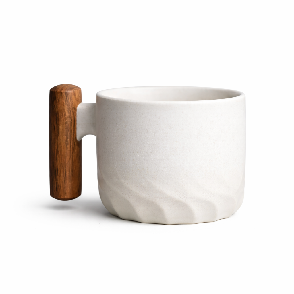 Perfect for coffee, tea, or hot chocolate, the thick stoneware body helps retain heat while the smooth wooden handle stays comfortable to hold. Whether styled in a contemporary kitchen or enjoyed during a quiet moment, this mug adds an elevated, artisanal touch to any drinkware collection.