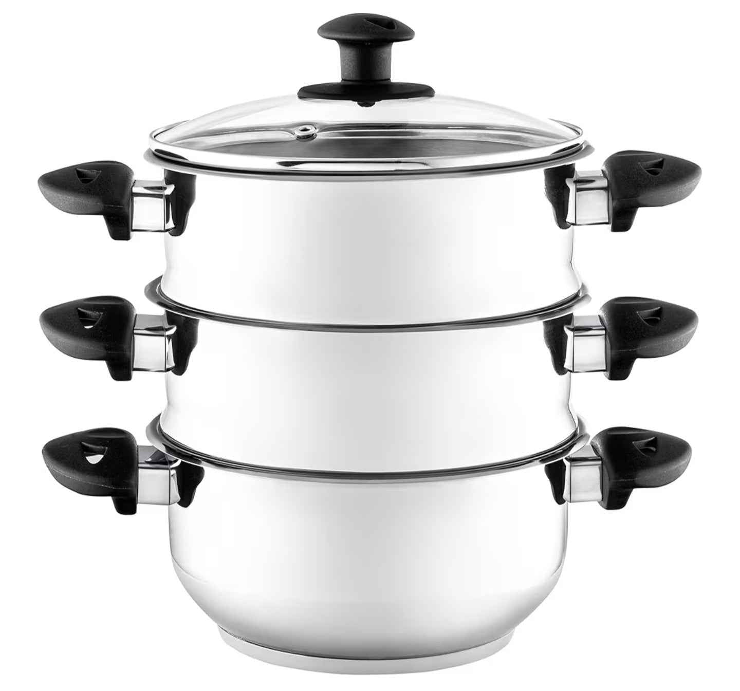 - 3 stainless steel steaming tiers