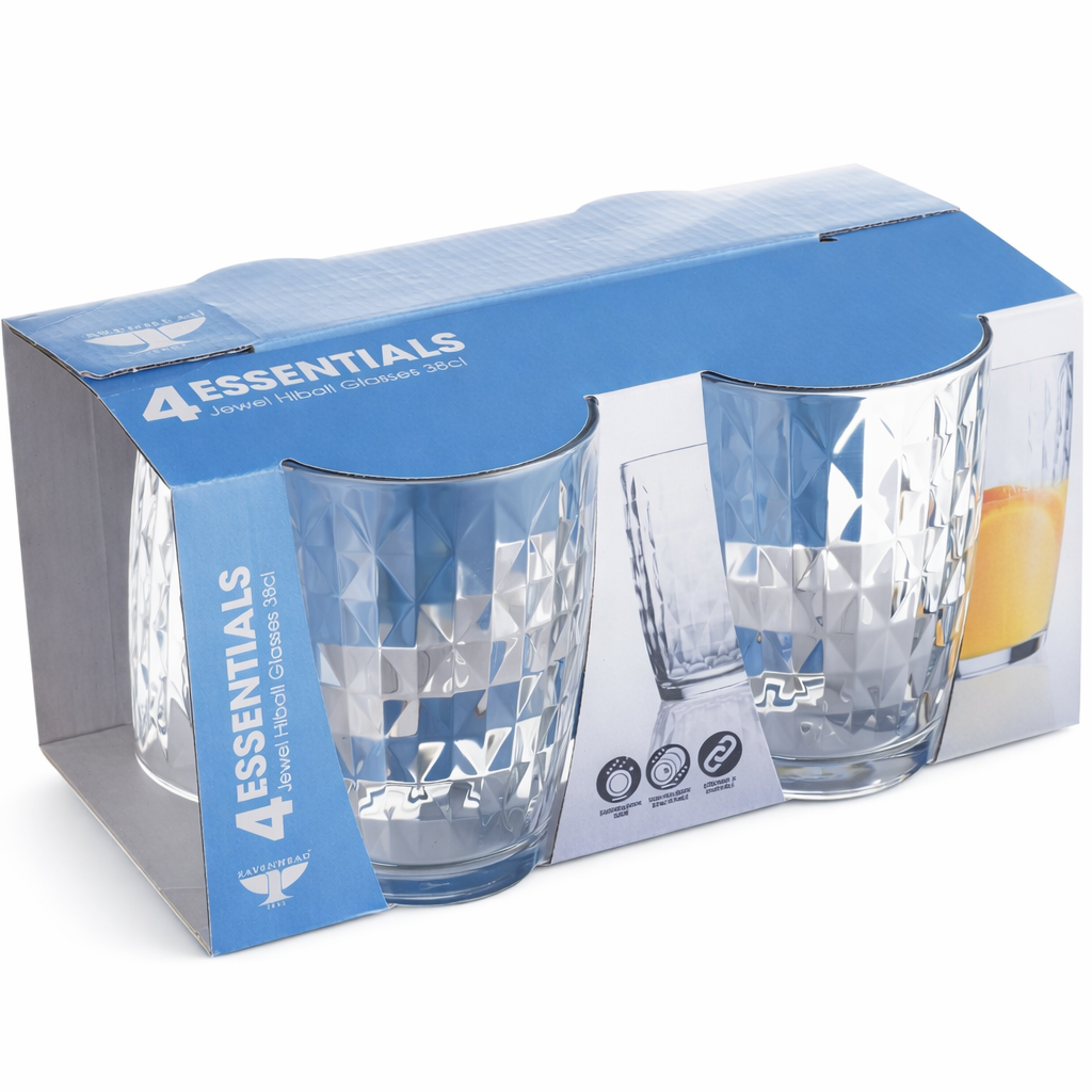 Crafted from durable, high-quality glass, the Jewel Hiball Glasses are ideal for both daily use and entertaining guests. Their comfortable shape and generous capacity make them a versatile staple for any kitchen or home bar.